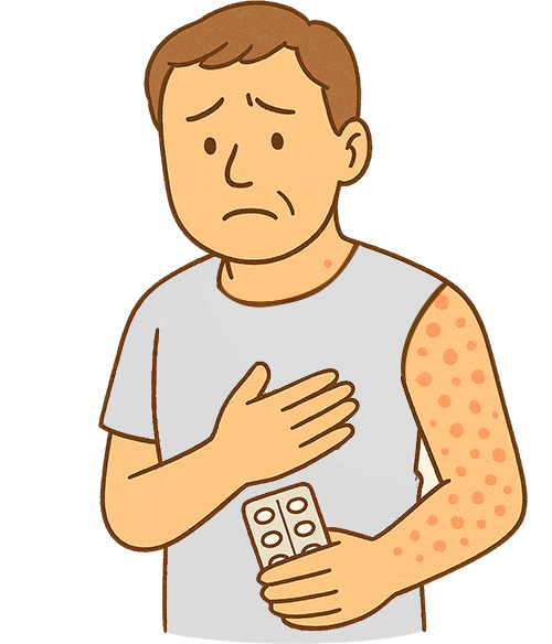 使用開始から数日〜数週間後に発症することが多く、原因薬の中止により軽快することがほとんどです。