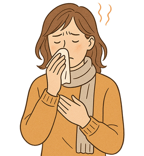 感冒はウイルスが原因で起こる急性の呼吸器感染症で、風邪とも呼ばれます。鼻や喉の粘膜に炎症が起こり、季節の変わり目や気温の変化が激しい時期に特に多く発症します。