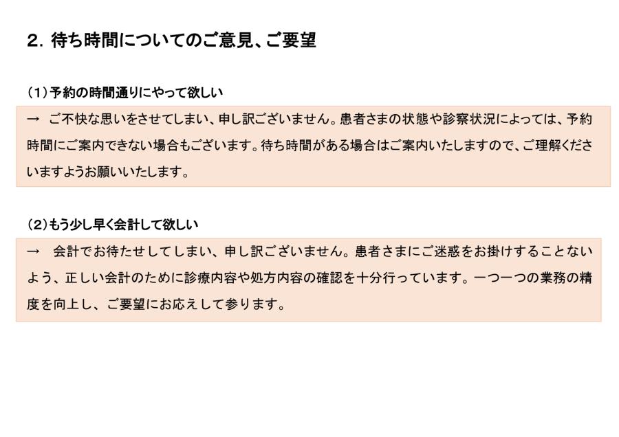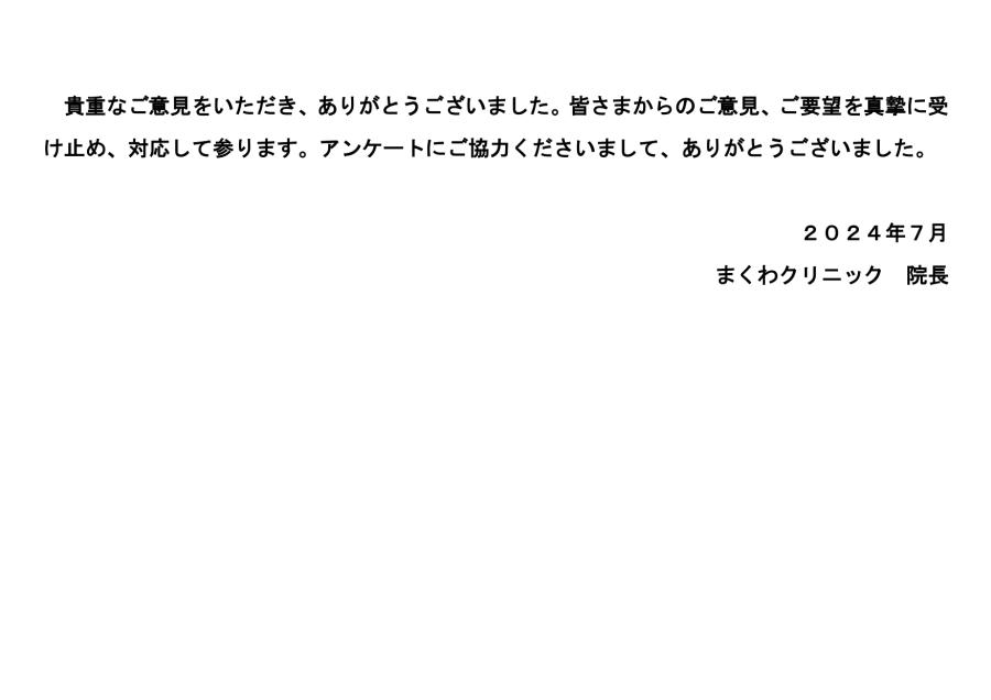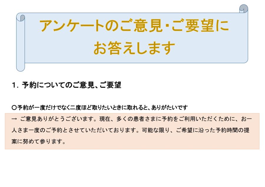 2023年度 クリニックアンケートのご意見・ご要望にお答えします